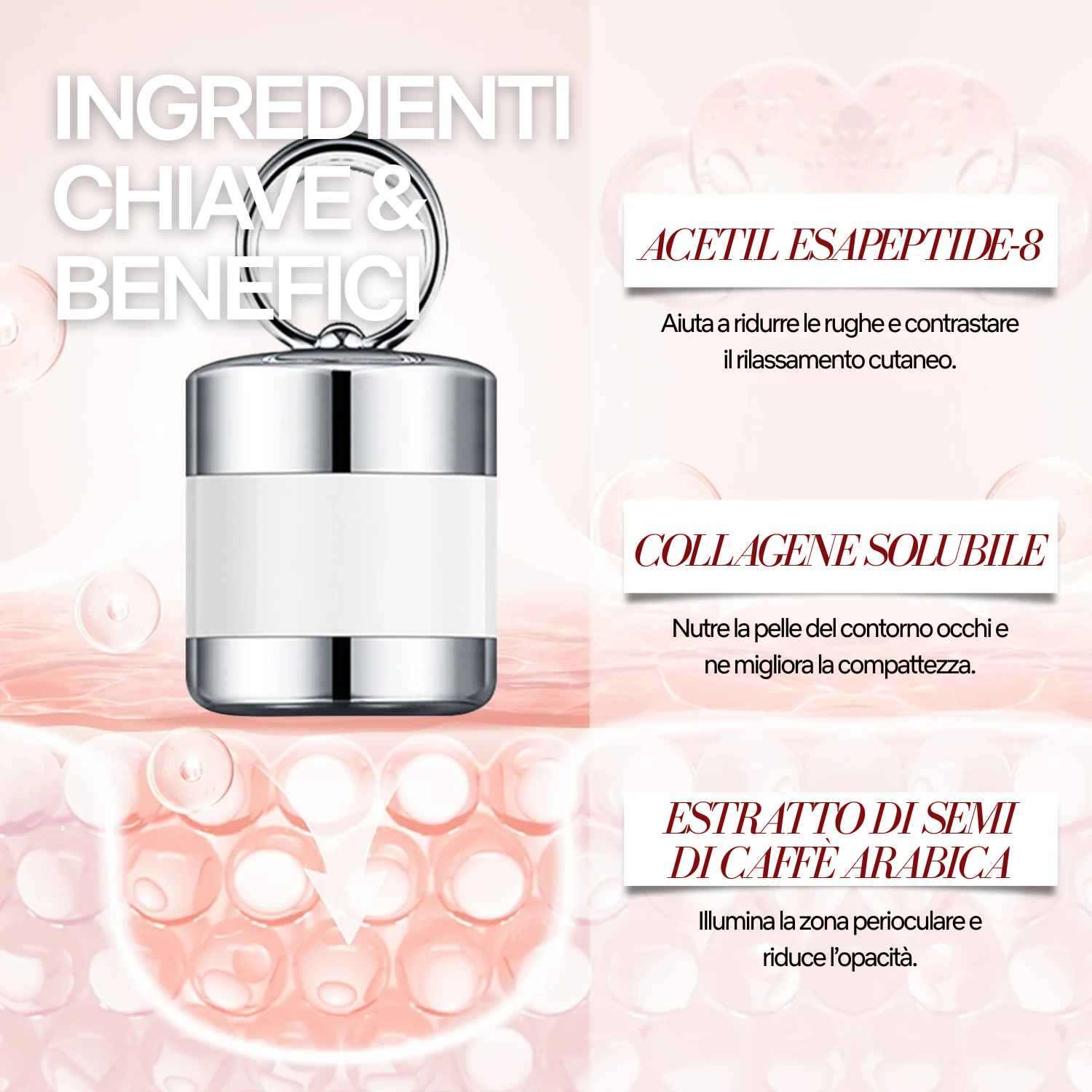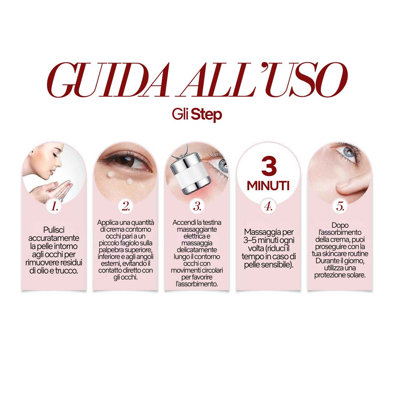 💆 Massaggio elettrico delicato: riduce gonfiore e occhiaie, stimola microcircolazione e assorbimento degli attivi.